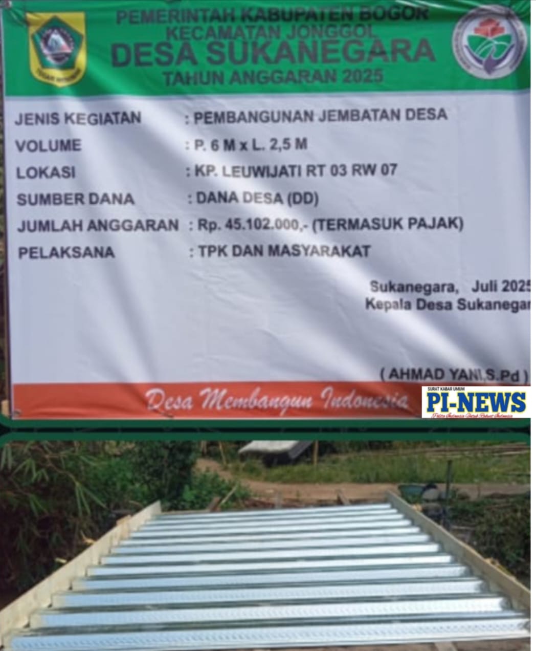 Menunjang kesejahteraan Warga Masyarakat, Pemerintah Desa (Pemdes) Sukanegara Kecamatan, Jonggol Kabupaten Bogor, Jawa Barat, merealisasikan dana desa (DD) Tahap ll Tahun Anggaran 2025 untuk pembangunan jembatan, Senin (04/08/2025).
