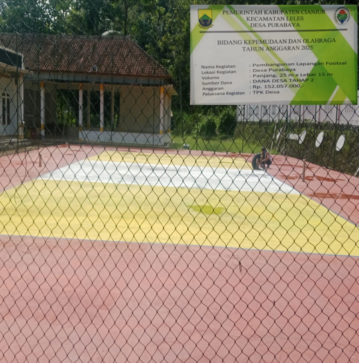 Seperti yang tampak pada papan informasi pembangunan lapangan futsal ini menghabiskan dana anggaran sebesar Rp 152.057.000; yang berasal dari tahap ke dua Dana Desa tahun 2025. Dalam proses pelaksanaannya pembangunan Pemdes Purabaya memberdayakan masyarakat setempat bertujuan untuk mengurangi angka pengangguran dan meningkatkan kesejahteraan ekonomi masyarakat desanya.