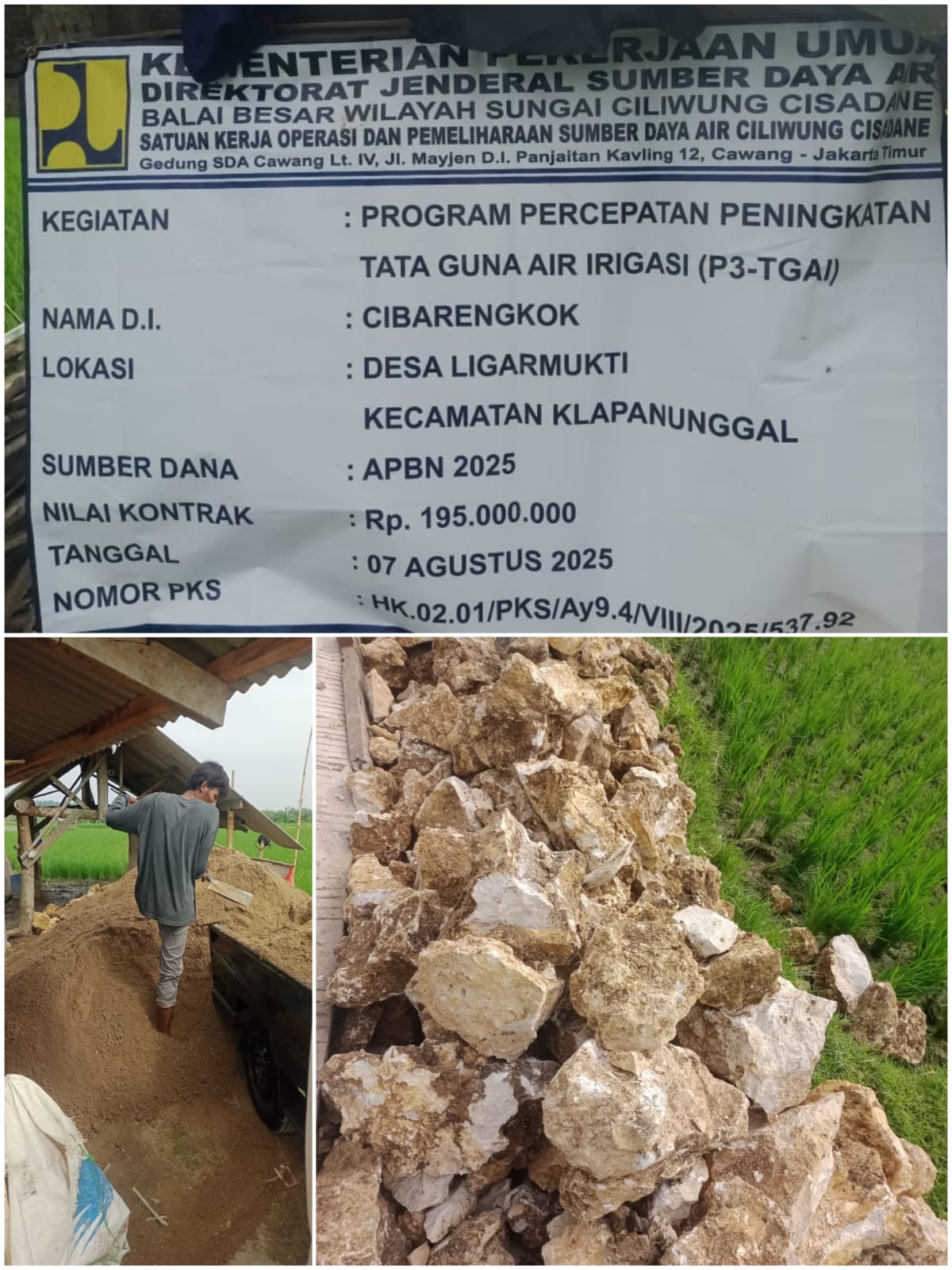 Salah satunya yang dilakukan kelompok P3A Sinar Harapan Jaya, yang berlokasi di Kampung Cibarengkok, Desa Ligarmukti, Kecamatan Klapanunggal, Kabupaten Bogor, yang mana dalam pelaksanaan pekerjaan tersebut diduga asal-asalan.