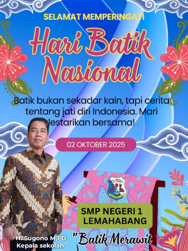 SMPN 1 Lemahabang kabupaten Cirebon mengucapkan selamat hari batik 2025 adminOktober 2, 202522 Dilihat Print 🖨 PDF 📄 SMPN 1 Lemahabang kabupaten Cirebon mengucapkan selamat hari batik 2025 Post Views: 22 Pos terkaitDPRD Kota Bandung Menerima Empat Usulan Raperda dari Propemperda Tahun 2025 Tahap II, Dalam Rapat ParipurnaPekerjaan kelompok P3A Sinar Harapan Jaya Diduga Tidak Sesuai Sepek Gunakan Batu AbuSertipikasi Tanah Ulayat Kaum di Sumatra Barat, Jaga Keamanan Pusaka Tinggi Masyarakat Hukum Adat*Lapor bapak kapolri Virallnya terkait maraknya berita gudang solar ilegal tidak ada tindakan apa pun dari polres KendalTegas..!!Ketua Pokja Wartawan KBB:”Rotasi Mutasi 14 Pejabat Eselon 2 Bukti Mundurnya Birokrasi Pemkab Bandung Barat”.Diduga Oknum Kepala Sekolah SD Negeri gunung Sahari dan SD negeri sekanagra 2 kecamatan Sukanagara Gelapkan Sebagian Dana PIP di Tahun 2024