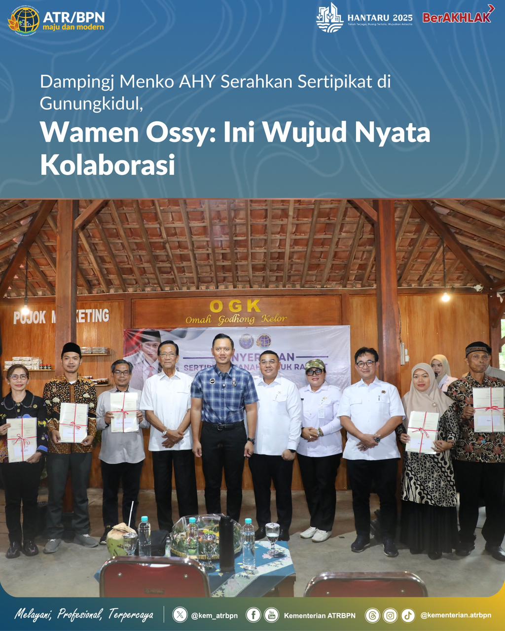 *Dampingi Menko AHY Serahkan Sertipikat di Gunungkidul, Wamen Ossy: Ini Wujud Nyata Kolaborasi*