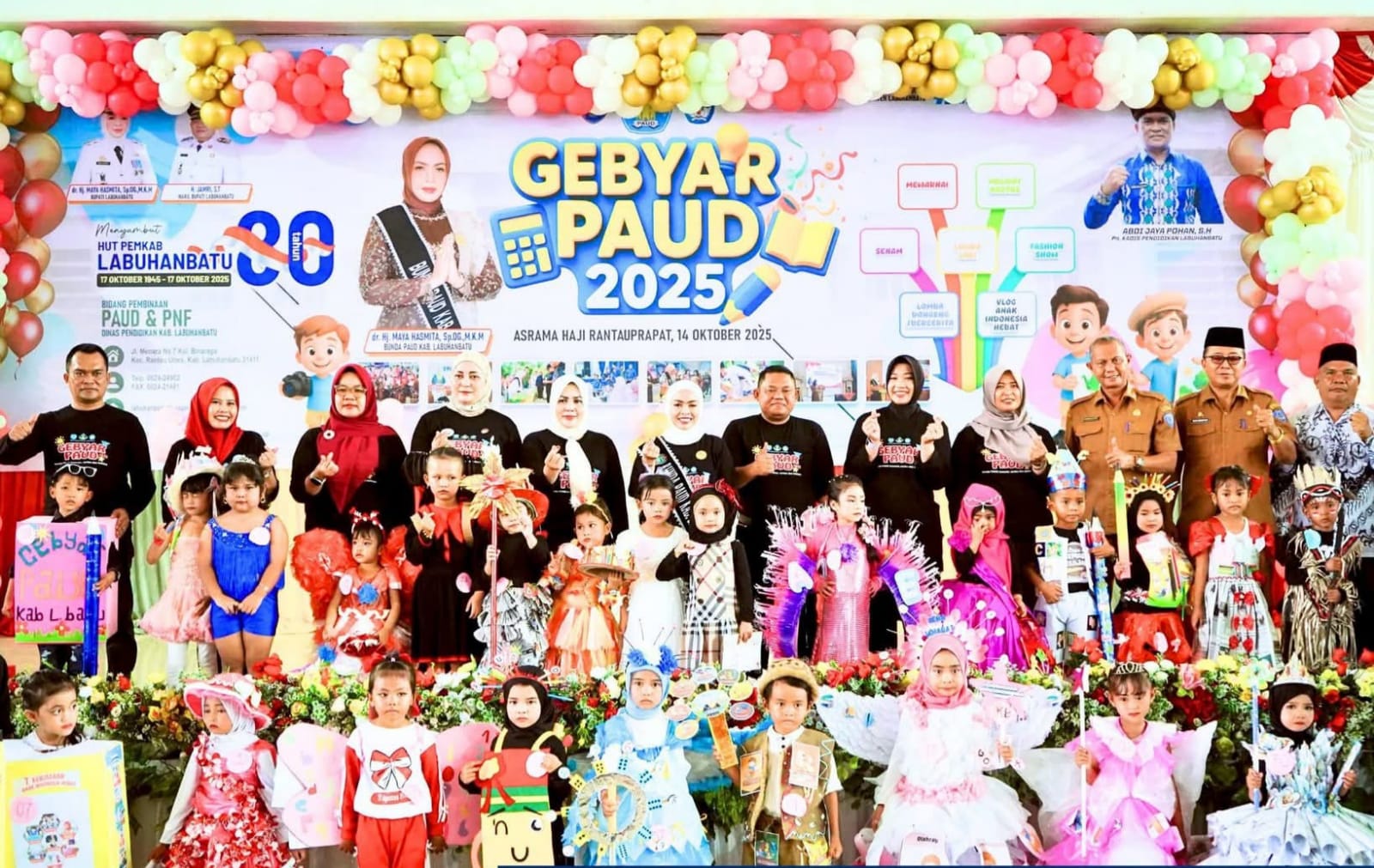 Hal tersebut disampaikan Bunda Maya Hasmita saat membuka Gebyar PAUD dalam rangka memperingati Hari Jadi ke-80 Kabupaten Labuhanbatu, yang digelar di Asrama Haji Rantauprapat, Kelurahan Ujung Bandar, Kecamatan Rantau Selatan, Selasa (14/10).