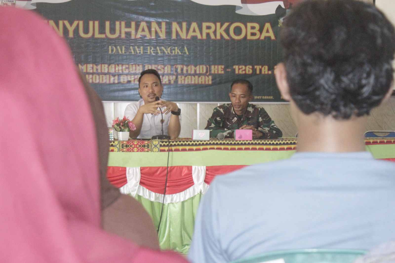 Dalam rangka kegiatan non fisik TMMD ke-126, Kodim 0427/Way Kanan mengadakan penyuluhan bahaya narkoba di Balai Kampung Sriwijaya, Kecamatan Umpu Semenguk.