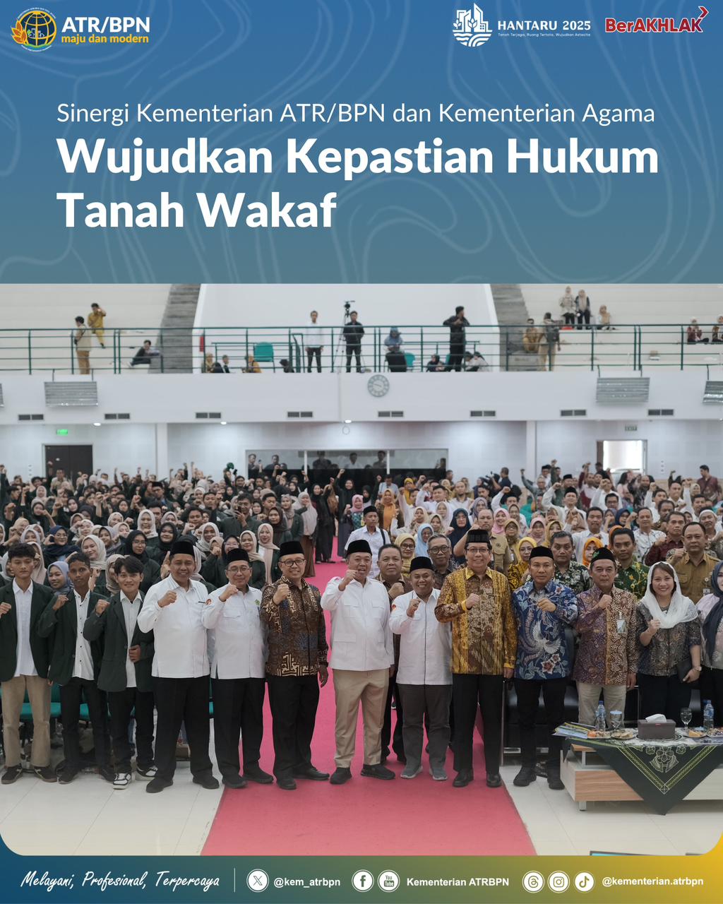 “Hulunya ada di Kementerian Agama, tapi tanggung jawabnya berdua. Karena, tanpa sertipikat dari Kementerian ATR/BPN, tanah wakaf belum memiliki kekuatan hukum penuh,” tegas Menteri Nusron.