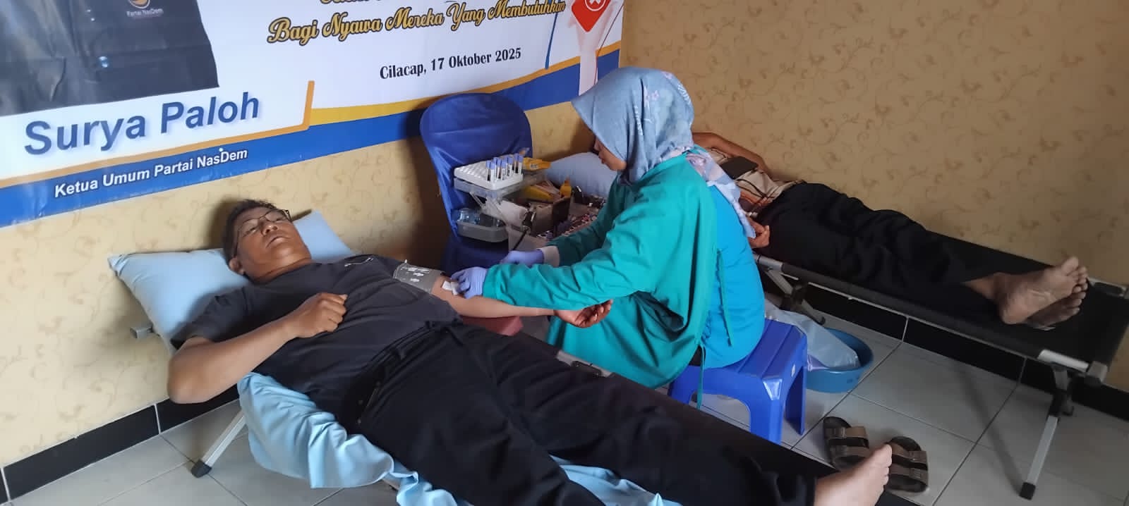 Donor Darah digelar Partai NasDem Cilacap di momen HUT ke-14. Adapun kegiatan digelar di Kantor DPD NasDem Cilacap, Jumat (17/10/2025).