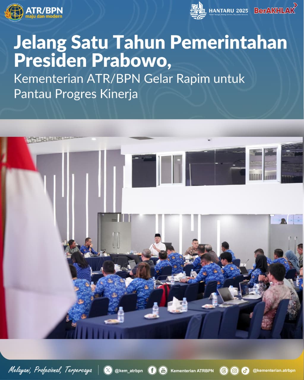 *Jelang Satu Tahun Pemerintahan Presiden Prabowo, Kementerian ATR/BPN Gelar Rapim untuk Pantau Progres Kinerja*