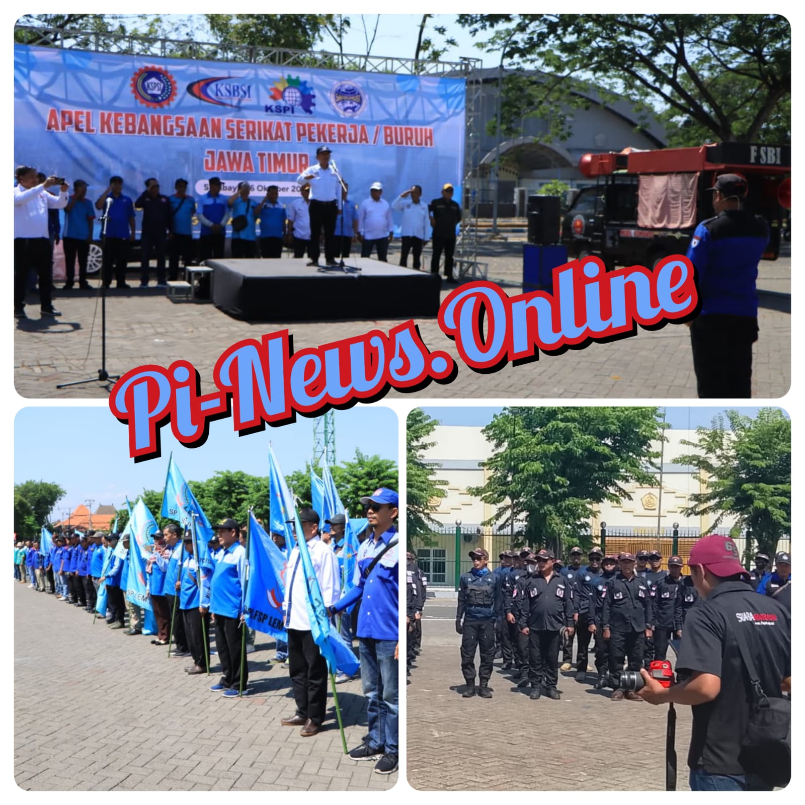 Sidoarjo Jatim, pi-news.online // Sebanyak ± 700 orang dari berbagai elemen serikat pekerja dan serikat buruh di Jawa Timur mengikuti kegiatan Apel Akbar Kebangsaan yang diselenggarakan pada Kamis (16/10) mulai pukul 09.00 – 09.45 WIB bertempat di area Parkir Timur Gedung Olah Raga (GOR) Delta Sidoarjo, Jalan Pahlawan No. 200, Kabupaten Sidoarjo.