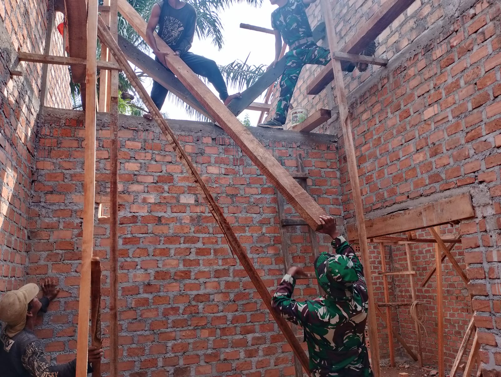 Pembangunan rumah ini dikerjakan secara bergotong royong oleh Satgas TMMD bersama masyarakat sekitar, dengan semangat kebersamaan dan kepedulian sosial yang tinggi. Rumah yang sebelumnya tidak layak huni kini mulai tampak berubah menjadi tempat tinggal yang lebih kokoh, layak, dan nyaman bagi keluarga Bapak Sidin.