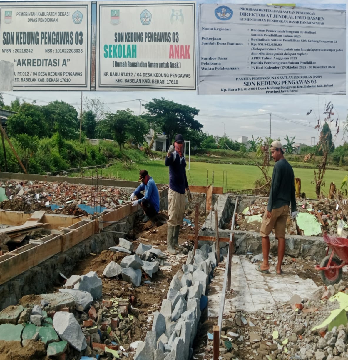 SD Negeri Kedung Pengawas 03 yang berlokasi di Desa Kedung Pengawas, Kecamatan Babelan, Kabupaten Bekasi, Jawa Barat, menjadi salah satu sekolah penerima Program Revitalisasi Satuan Pendidikan Tahun 2025 dari Direktorat Jenderal PAUD Dasmen, Kementerian Pendidikan Dasar dan Menengah.