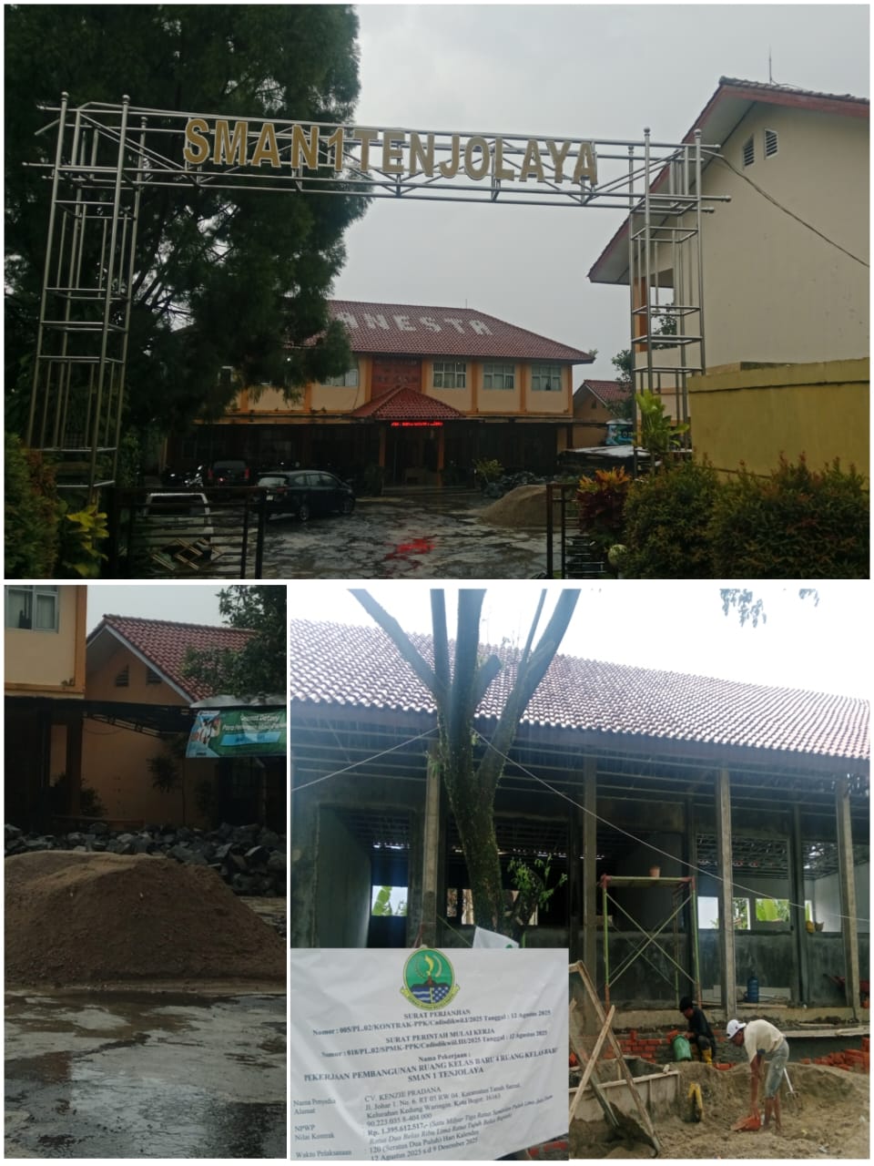 SMA Negeri 1 Tenjolaya, Desa Tapos 1, Kecamatan Tenjolaya Kabupaten Bogor, memulai pembangunan Ruang Kelas Baru (RKB) sebanyak 4 ruangan di lingkungan sekolah, dengan menggunakan anggaran APBD Tahun 2025, senilai Rp.1.395.612.517; ( Satu Miliar Tiga Ratus Sembilan Puluh Lima Juta Enam Ratus Dua Belas Ribu Lima Ratus Tujuh Belas Rupiah ).