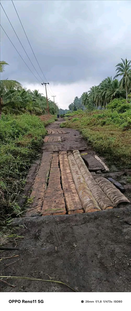 Jalan yang menghubungkan Masyrakat 2 Desa menuju Pusat kecamatan sekaligus jalan penghubung Masyrakat yang mau ke ibukota kabupaten Kepulauan Meranti Selatpanjang yang melewati jalan darat kondisinya cukup memperihatinkan .
