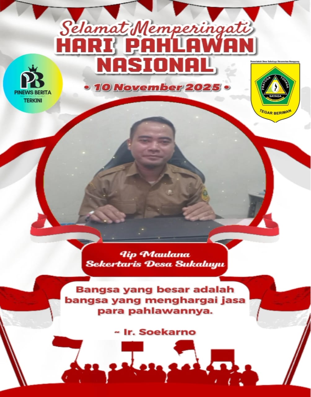 Iip Maulana Sekertaris Desa Sukaluyu Kecamatan Nanggung Kabupaten Bogor, Jawa Barat. Mengucapkan Selamat Hari Pahlawan Nasional 10 November 1945 – 2025“Kami teruskan api juangmu wahai pahlawan, mengisi kemerdekaan dengan harapan tak berkesudahan.
