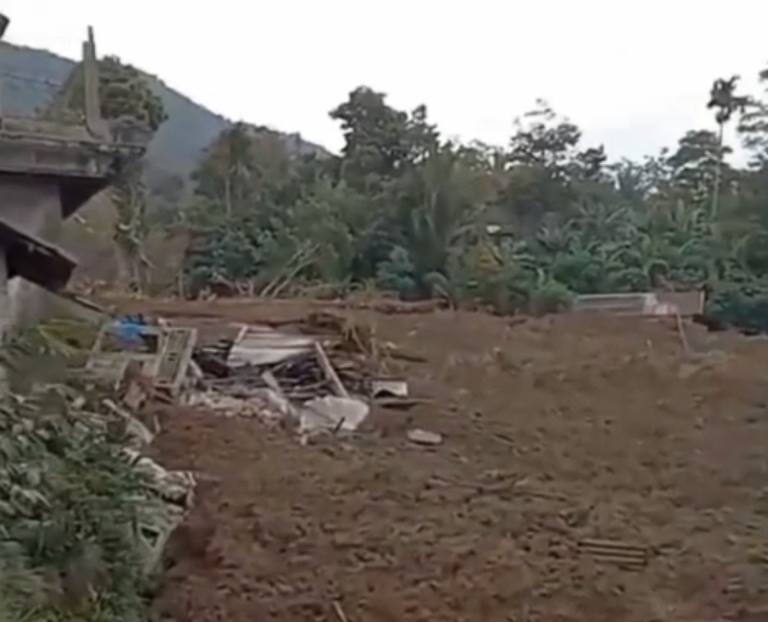 Sejumlah rumah warga terlihat mengalami kerusakan parah, bahkan beberapa dilaporkan rata dengan tanah akibat terjangan longsor.