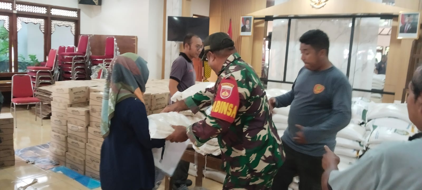 Babinsa Kelurahan Joyotakan Koramil 03/Serengan Kodim 0735/Surakarta Serma Rumbawa membantu pengamanan pendistribusian beras dan minyak goreng dari bulog bertempat di aula Kelurahan Joyotakan Kecamatan Serengan Kota Surakarta,19/11/2025