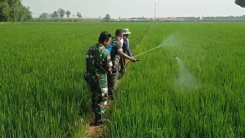 Dikatakan Babinsa Serma Juhari bahwa tujuan dari penyemprotan tanaman padi adalah untuk menjaga tanaman agar terhindar dari segala gangguan hama, seperti wereng, tikus, ulat, dan lain-lain.