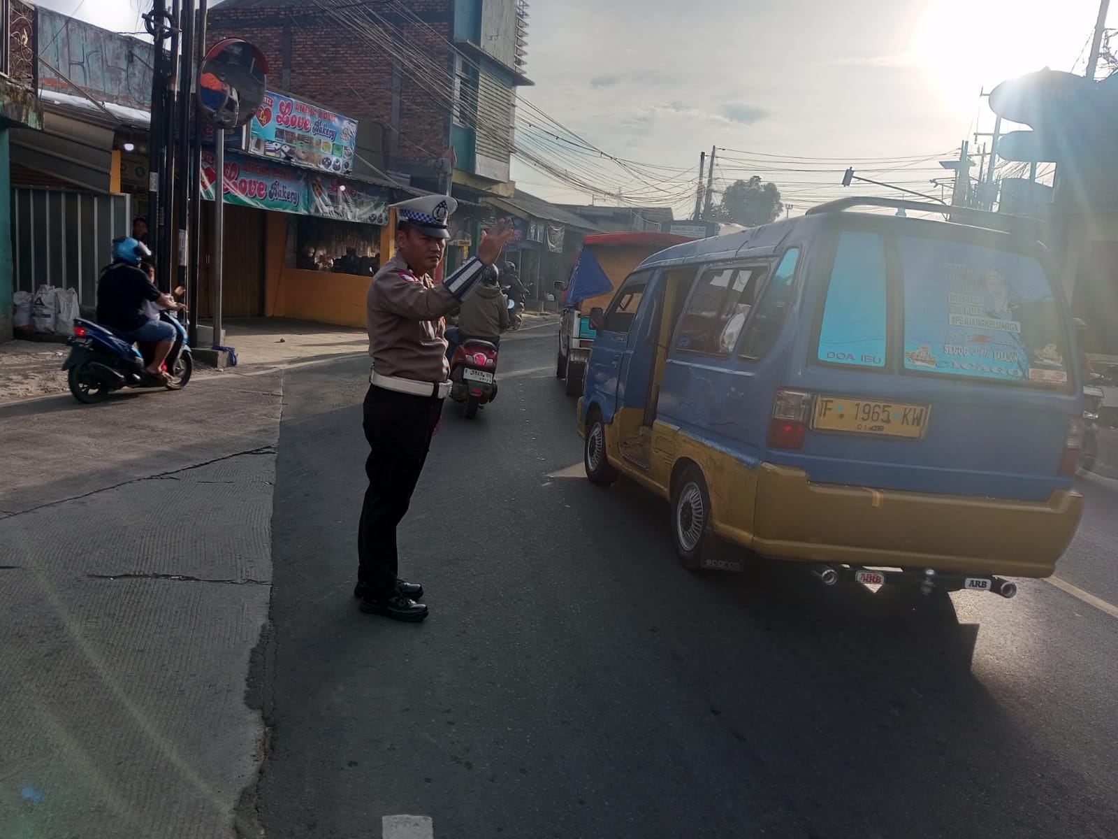 Anggota Polsek Ciampea Polres Bogor Laksanakan Pengaturan Lalu Lintas Pagi Hari