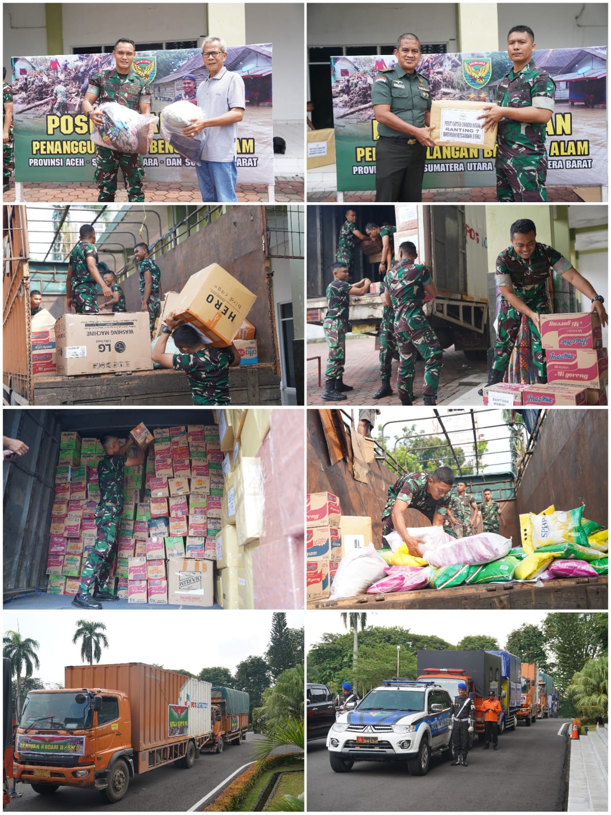 KODAM II/SRIWIJAYA SALURKAN RIBUAN PAKET BANTUAN UNTUK KORBAN BENCANA DI ACEH, SUMATERA UTARA, DAN SUMATERA BARAT