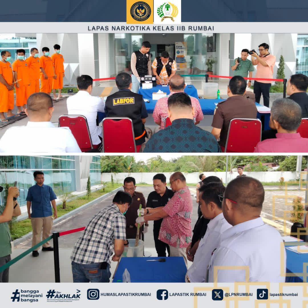 Dalam rangka melaksanakan 13 Program Akselerasi Menteri Imigrasi dan Pemasyarakatan, Lembaga Pemasyarakatan (Lapas) Narkotika Kelas IIB Rumbai yang diwakili oleh Kepala Seksi Administrasi Keamanan dan Ketertiban, Edoward Nikelini bersama jajaran menghadiri pemusnahan barang bukti shabu seberat 38,34 Gram bersama BNNP Riau yang dilaksanakan oleh Kepala Bidang Pemberangkatan Intelijen BNNP Riau, KBP. Dr.Ali Machfud, S.I.K., M.I.K, Kamis (4/12/2025).