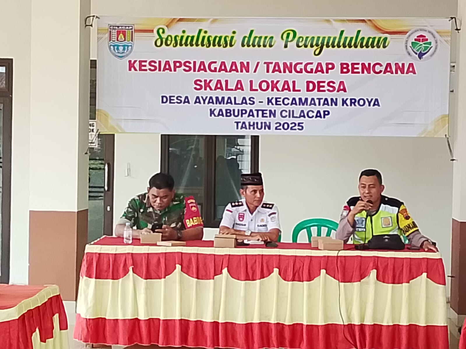 Sosialisasi penyuluhan kesiapsiagaan /tanggap bencana skala lokal desa ayamalas Kroya di ikuti oleh warga dan ketua RT /RW se desa ayam alas di pandu langsung oleh kepala desa Kosim SH dan Babinsa sertu Irawan babinkamtibmas Bripka Anjar Teja purnama ,dalam penyampainya supaya warga ikut menjaga lingkungan dan memantau supaya meminimalisir kenakalan remaja kilahnya