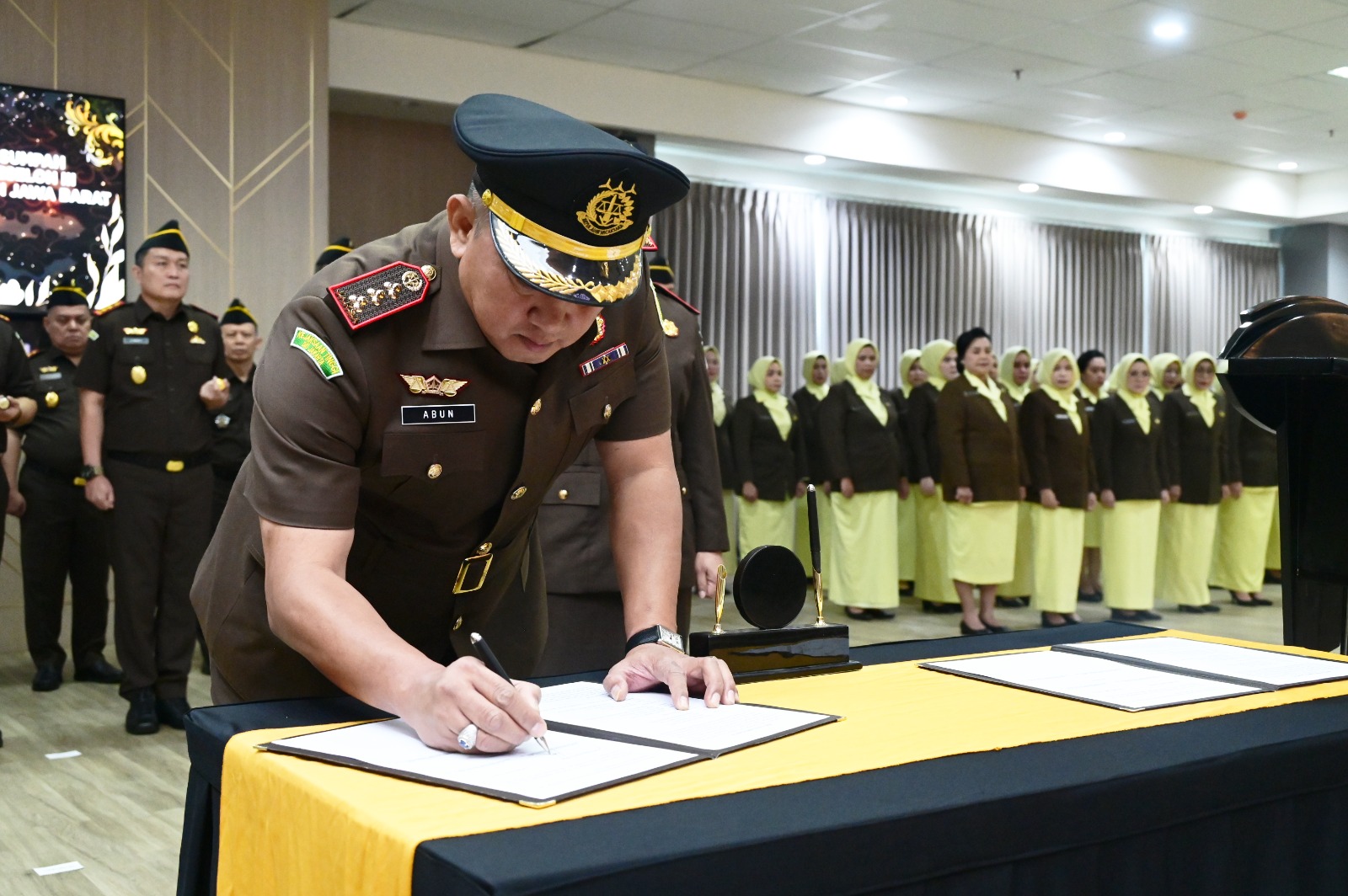 Bertempat di Aula R.Soeprapto Kejaksaan Tinggi Jawa Barat, Kepala Kejaksaan Tinggi Jawa Barat Dr. Hermon Dekristo, S.H., M.H. melantik Kepala Kejaksaan Negeri Kota Bandung Abun Hasbulloh Syambas, S.H., M.H. dan Kepala Kejaksaan Negeri Kota Sukabumi Siti Holijah Harahap, S.H., M.H. (17/12/25).