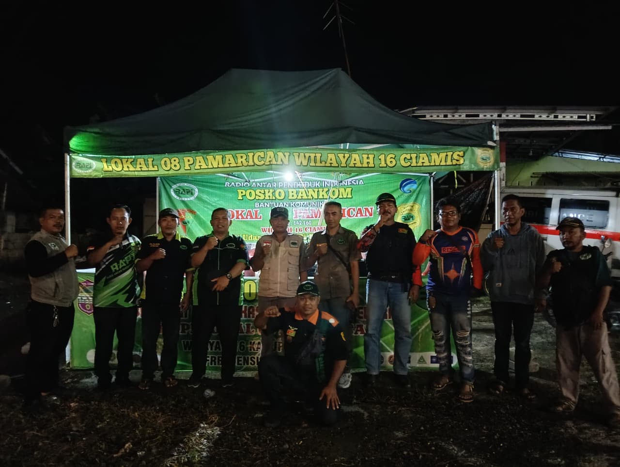 Kedatangan Ketua Wilayah 16 RAPI Kabupaten Ciamis, beserta Jajaran Pengurus disambut langsung oleh Sekretaris RAPI Lokal 08 Pamarican, Jalaludin atau yang akrab disapa Bewok, (JZ 10 CGF), bersama para anggota lainnya yang tengah bertugas di Posko.