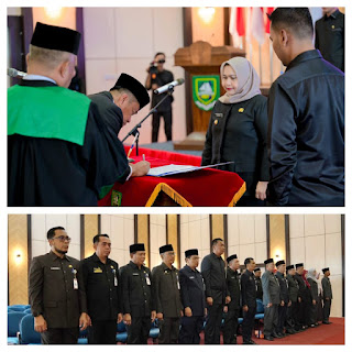 “Alhamdulillah, izin dari Menteri Dalam Negeri telah kita peroleh pada akhir Desember 2025, sehingga hari ini pengambilan sumpah dan pelantikan dapat kita laksanakan,” jelas Bupati Kasmarni.