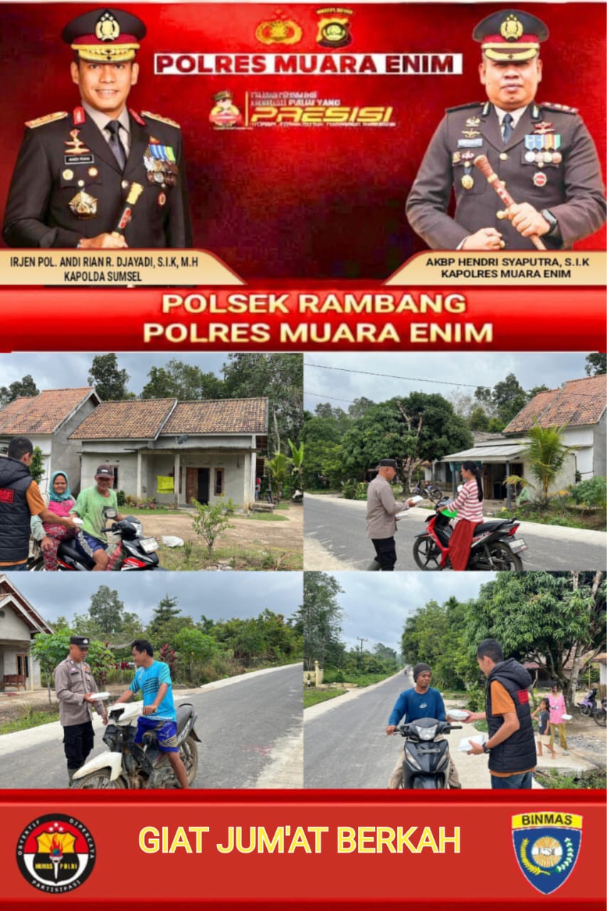 Kapolres Muara Enim AKBP Hendri Syaputra, S.I.K., melalui Kapolsek Rambang IPTU Zulkarnain Afianata, S.T., M.Si., M.H., mengatakan bahwa kegiatan Jumat Berkah merupakan wujud nyata kehadiran Polri di tengah masyarakat.
