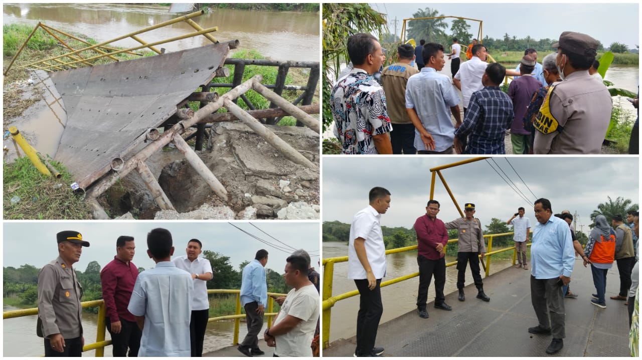 KAPOLSEK RANTAU ALAI DAMPINGI BUPATI OGAN ILIR TINJAU JEMBATAN ROBOH DAN SAMPAIKAN IMBAUAN KESELAMATAN