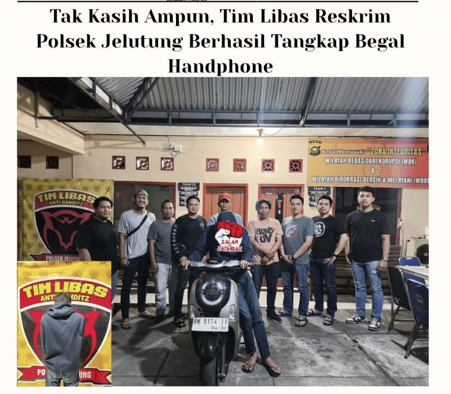 Tim Libas Reskrim Polsek Jelutung Berhasil Tangkap Pelaku Begal Handphone
