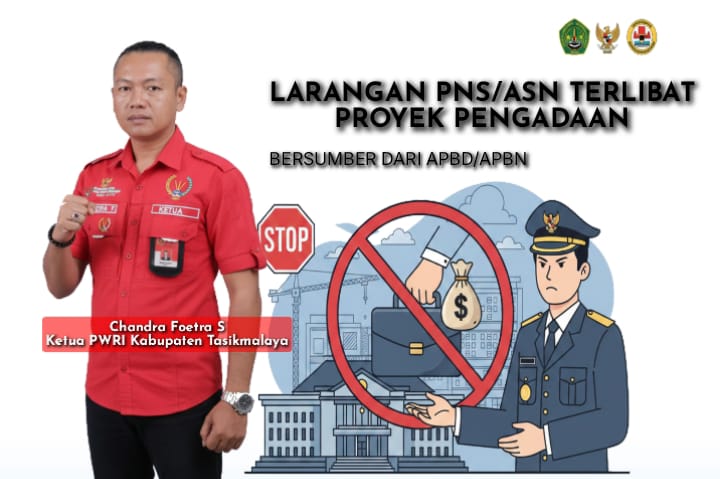 Ketua Persatuan Wartawan Republik Indonesia (PWRI) Kabupaten Tasikmalaya, Chandra F. Simatupang, menegaskan larangan keras bagi Pegawai Negeri Sipil (PNS) atau Aparatur Sipil Negara (ASN) untuk terlibat dalam proyek dan pengadaan barang dan jasa yang bersumber dari APBD maupun APBN. Pernyataan ini mengingatkan kembali pada regulasi yang sudah jelas melarang praktik benturan kepentingan dan penyalahgunaan wewenang.