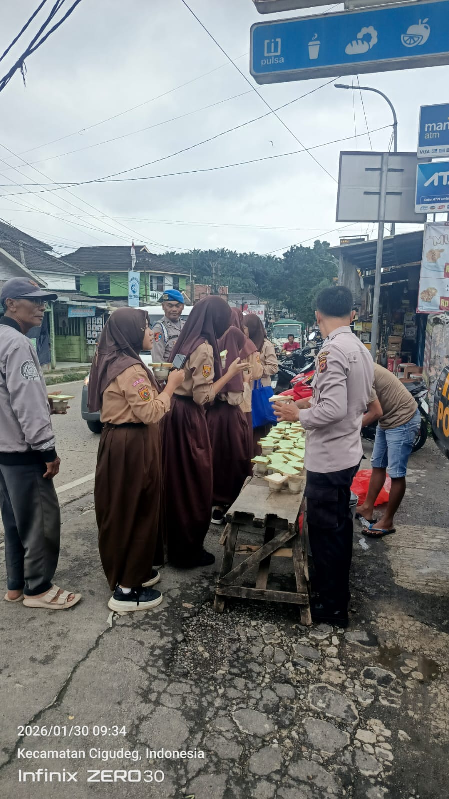 Dalam kegiatan tersebut, personel Polsek Cigudeg berbagi makanan kepada masyarakat sebagai bentuk empati dan kepedulian sosial, khususnya kepada warga yang membutuhkan dan para pengguna jalan.