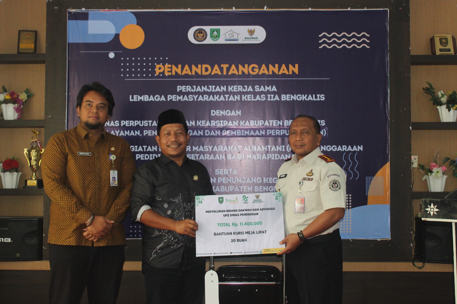 Bengkalis,pi- news.online-Lembaga Pemasyarakatan (Lapas) Kelas IIA Bengkalis resmi menjalin kolaborasi strategis melalui penandatanganan Perjanjian Kerja Sama (PKS) dengan Dinas Perpustakaan dan Kearsipan (Dispersip) Kabupaten Bengkalis serta Yayasan PKBM Albantani guna memperkuat literasi dan pendidikan bagi narapidana, Kamis (12/02). Bertempat di aula Lapas Bengkalis, acara ini juga dirangkaikan dengan penyerahan bantuan penunjang kegiatan belajar oleh Baznas Kabupaten Bengkalis sebagai wujud nyata dukungan terhadap program pengembangan intelektual warga binaan. Agenda yang dipimpin langsung oleh Kalapas Bengkalis, Priyo Tri Laksono, ini dihadiri oleh jajaran pimpinan instansi terkait sebagai langkah implementasi Undang-Undang No. 22 Tahun 2022 tentang Pemasyarakatan dalam mencetak sumber daya manusia yang unggul meski dari balik jeruji besi.
