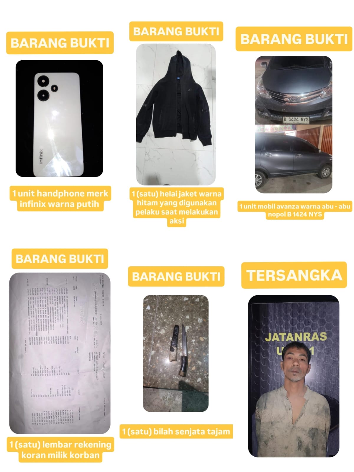 Penyidik menyita satu unit mobil Avanza warna abu-abu, satu bilah senjata tajam, rekening koran korban, serta rekaman CCTV sebagai barang bukti. Saat ini penyidik melengkapi berkas perkara, memeriksa saksi tambahan, dan berkoordinasi dengan Jaksa Penuntut Umum untuk mempercepat proses hukum.