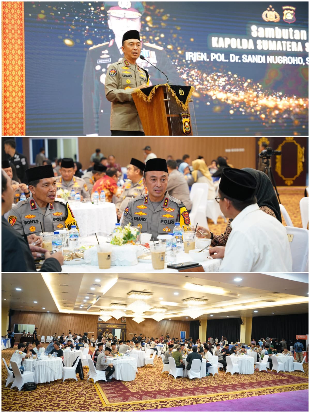 Kapolda Sumatera Selatan menegaskan komitmennya memperkuat kemitraan strategis dengan insan pers saat menggelar buka puasa bersama awak media se-Sumatera Selatan di Mapolda Sumsel, Jumat (27/2/2026) pukul 18.00 WIB.