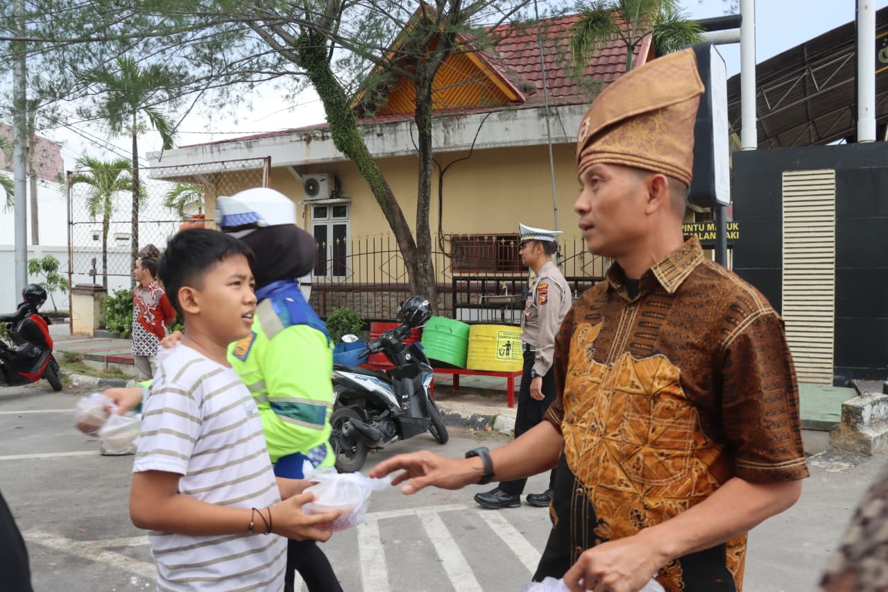 Dumai ,pi-news.online-Polres Dumai melaksanakan kegiatan pembagian takjil Ramadhan 1447 H/2026 M kepada masyarakat pengguna jalan menjelang waktu berbuka puasa. Kegiatan yang bertempat di depan Markas Kepolisian Resor (Mako) Polres Dumai, Jalan Jenderal Sudirman Kelurahan Buluh Kasap Kecamatan Dumai Timur, berlangsung pada hari Jumat (27/2/2026) sekitar pukul 17.00 WIB hingga pukul 18.00 WIB.