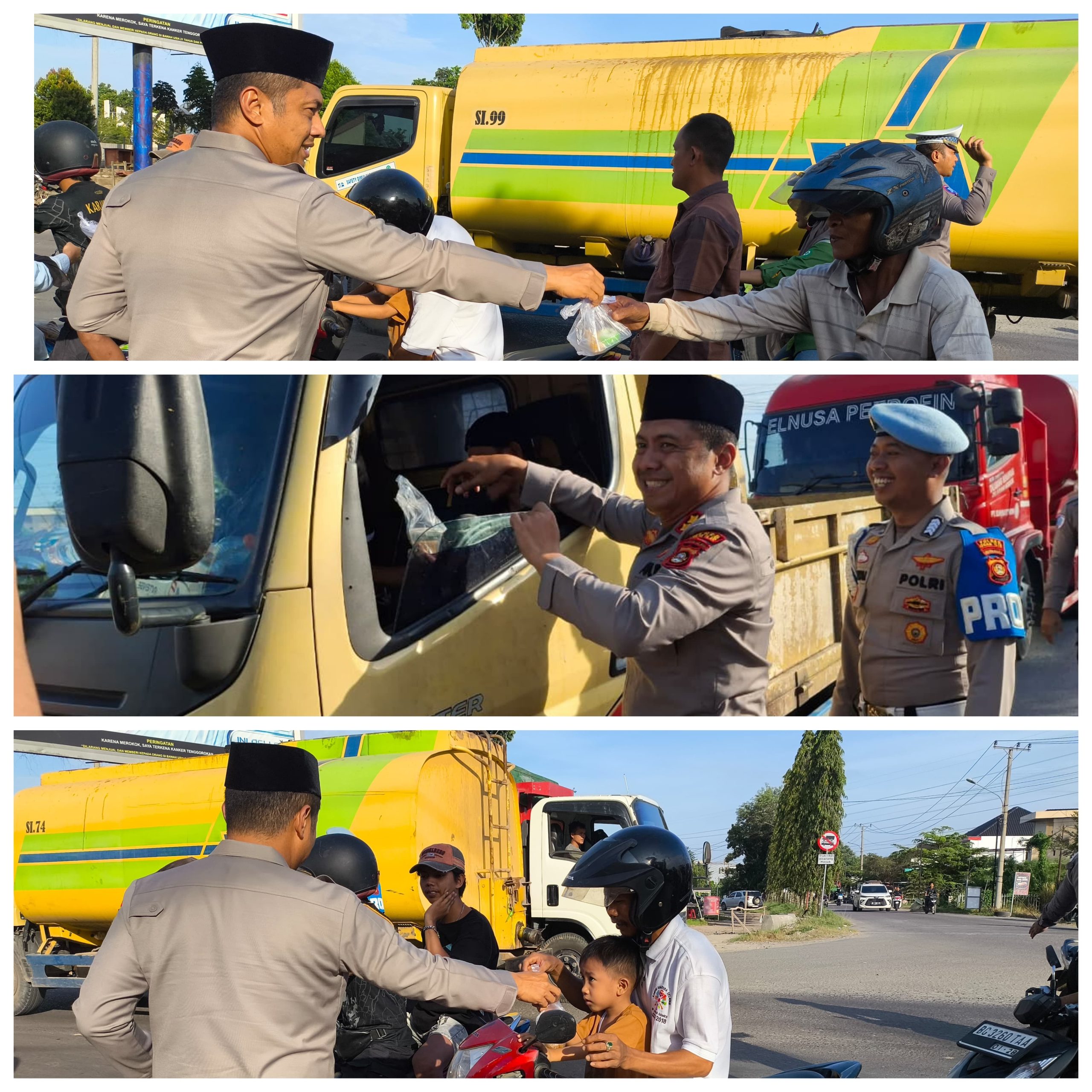 Sementara itu, di wilayah Polsek Indralaya, kegiatan dipimpin oleh Kapolsek Indralaya AKP Junardi, S.H., M.A.P., didampingi Wakapolsek, para Kanit, serta personel Polsek Indralaya. Takjil dibagikan kepada para pengendara dan masyarakat yang melintas di Jalan Lintas Timur Km 36.