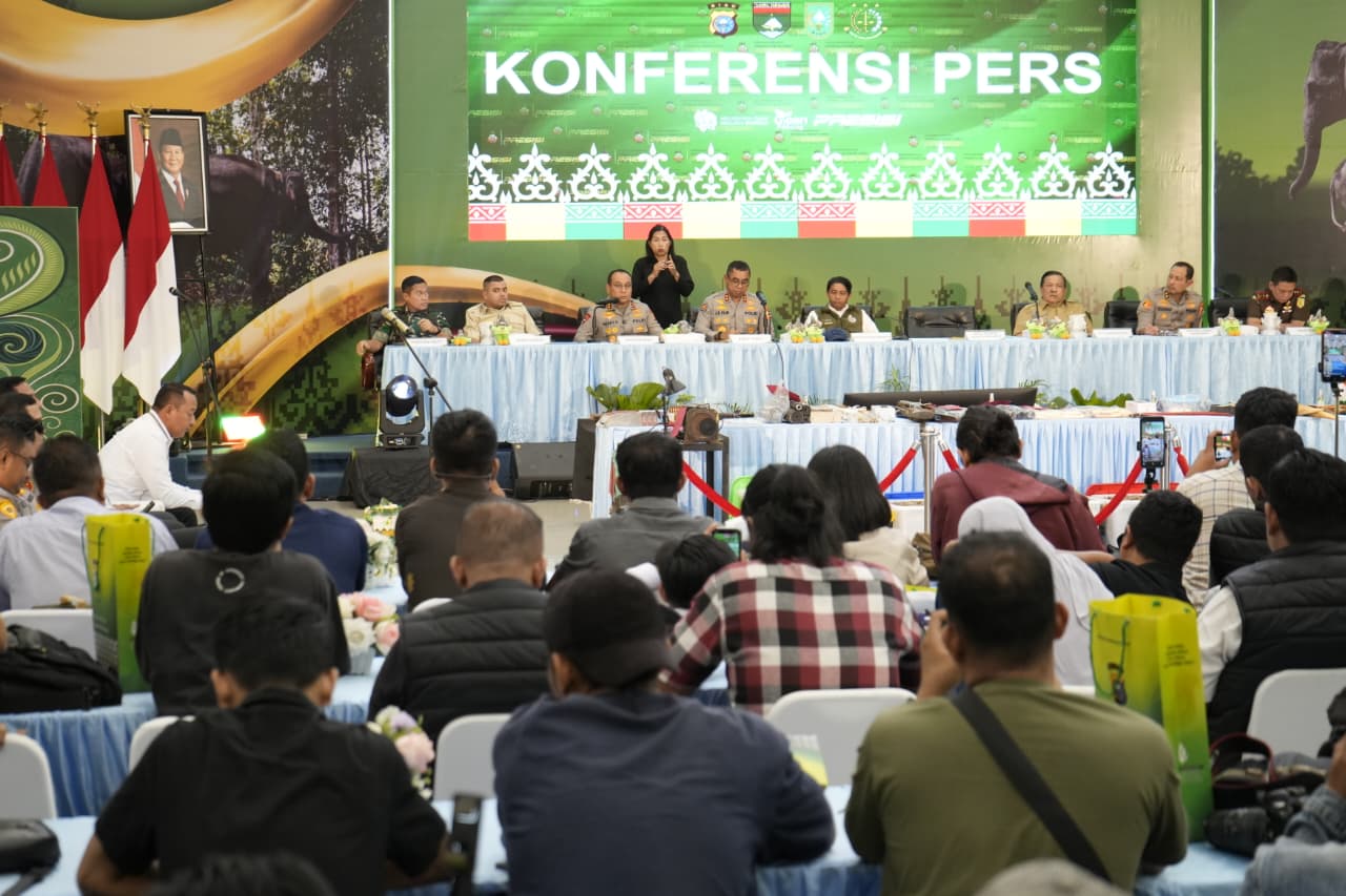 Hadir dalam jumpa pers tersebut, Menteri Kehutanan Raja Juli Antoni, Wamen Lingkungan Hidup Diaz Hendropritono, Anggota Komisi III DPR RI Muhammad Rahul, Plt. Gubernur Riau SF Hariyanto, Penyidik Utama Bareskrim Polri Irjen Zulkarnaen, Kadiv Humas Polri Irjen Johnny Isir, Pangdam Tuanku Tambusai Mayjen Agus Hadi Waluyo, dan Kapolda Riau Irjen Herry Heryawan beserta jajaran PJU Polda Riau dan Polres Pelalawan.