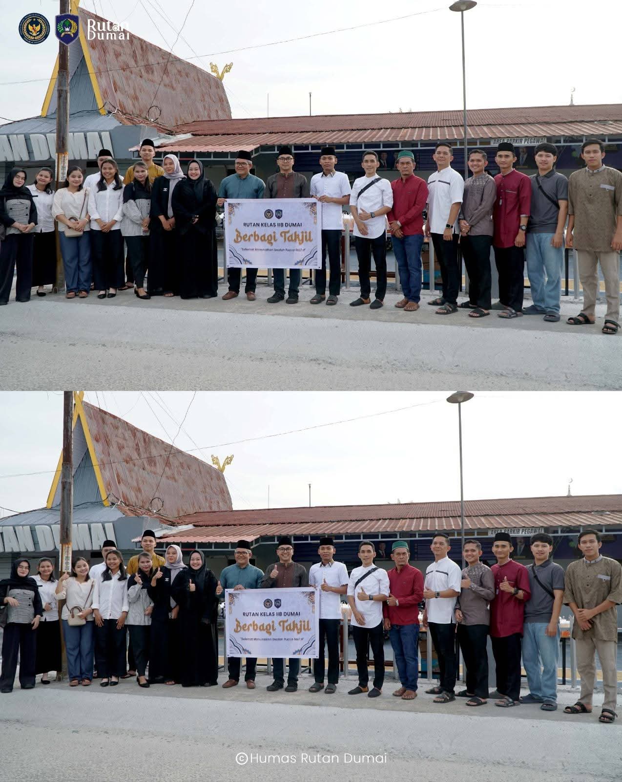 Sebanyak 165 paket takjil dibagikan kepada warga dan para pengguna jalan yang melintas di depan area Rutan Dumai menjelang waktu berbuka puasa. Suasana penuh kehangatan tampak saat petugas turun langsung ke jalan untuk membagikan takjil, yang disambut antusias oleh masyarakat dan pengendara.