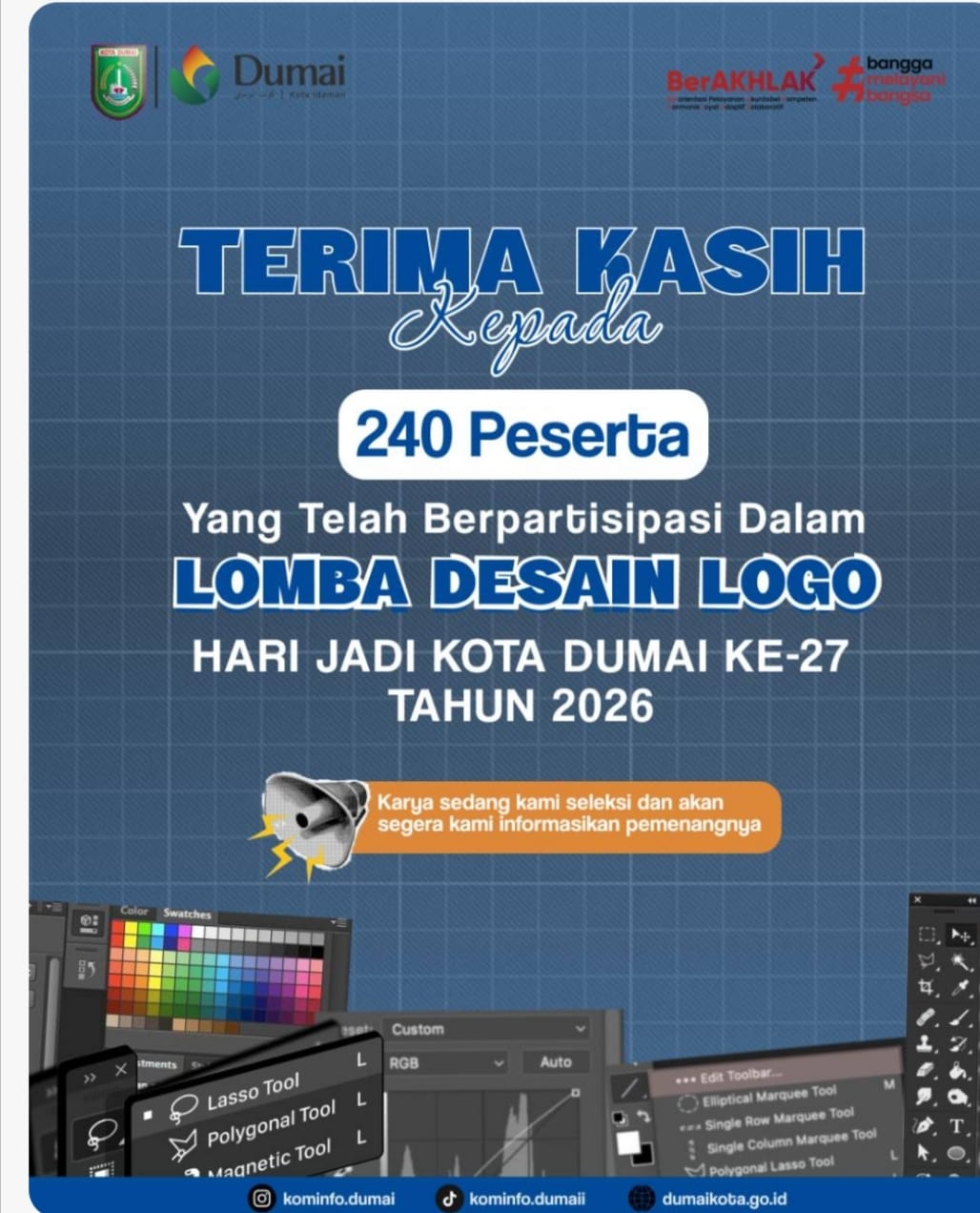 Dumai,pi-news.online- Lomba desain logo untuk peringatan Hari Jadi ke-27 Kota Dumai resmi ditutup pada Selasa (3/3/2026) pukul 23.59 WIB. Sebanyak 240 karya desain dari berbagai daerah di Indonesia telah diterima panitia dan kini memasuki tahap penilaian oleh tim juri.