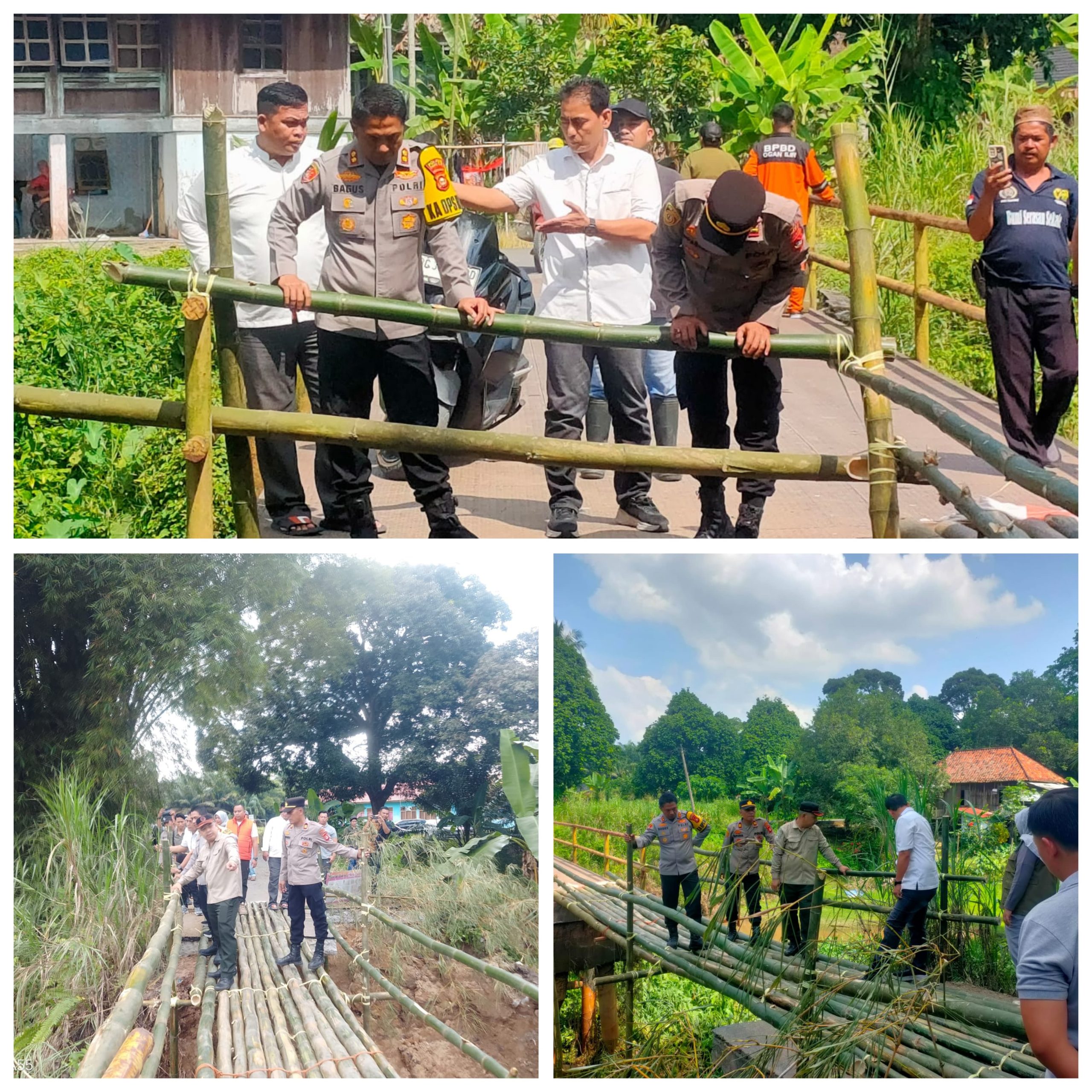 Di lokasi, terlihat sinergi antara masyarakat dan aparat kepolisian yang tengah bergotong royong membangun jembatan darurat dari bambu sebagai akses sementara bagi warga.