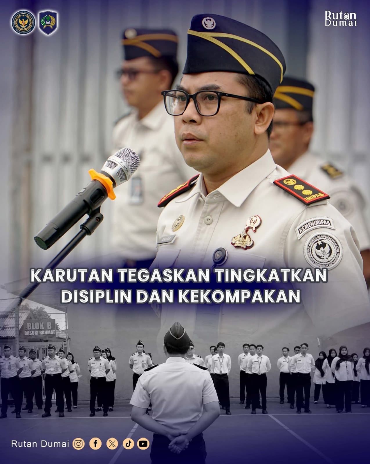 “Sebagai petugas pemasyarakatan, kita dituntut untuk bekerja disiplin, menjaga integritas, dan memberikan pelayanan terbaik kepada masyarakat,” ujar Karutan.