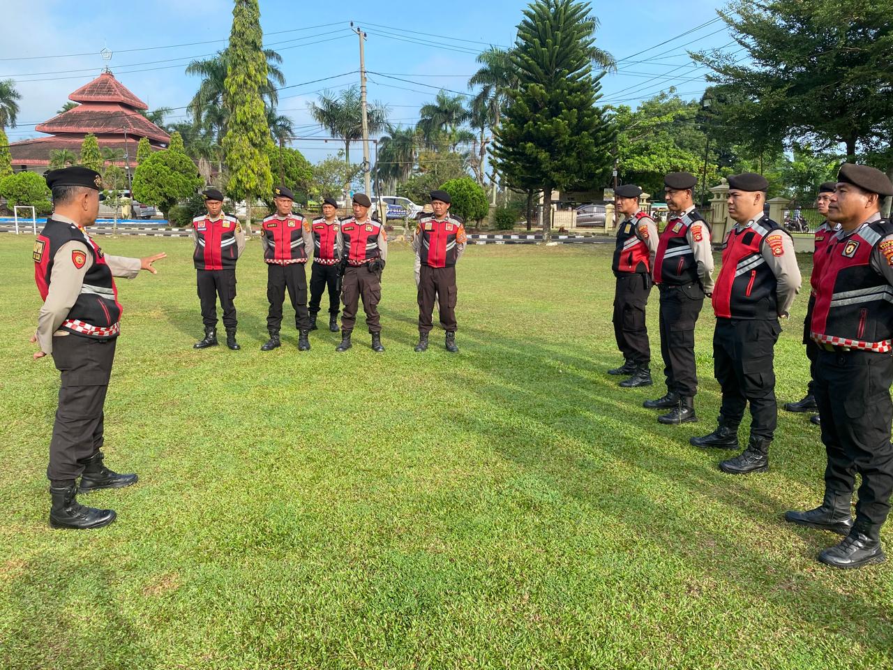 Kasat Samapta Polres Ogan Ilir memberikan penekanan dan atensi khusus kepada seluruh jajaran personel Samapta dalam rangka meningkatkan kesiapsiagaan menghadapi potensi kebakaran hutan dan lahan (karhutla) yang rawan terjadi seiring kondisi cuaca panas.