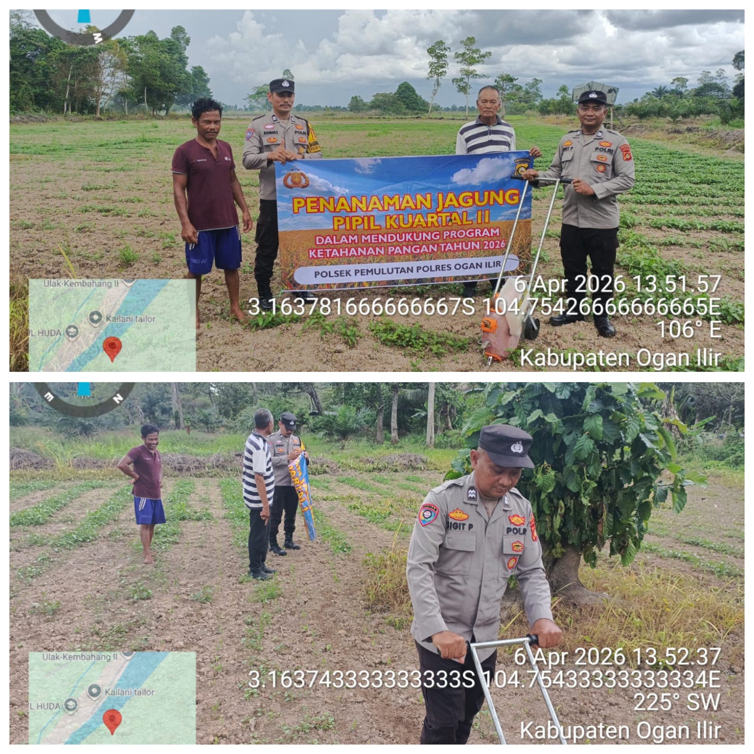Sebagai upaya memperkuat ketahanan pangan, Polsek Pemulutan menjalin kolaborasi dengan kelompok tani melalui kegiatan penanaman jagung pipil di Desa Ulak Kembahang I, Kecamatan Pemulutan Barat, Kabupaten Ogan Ilir, Rabu (06/04/2026).