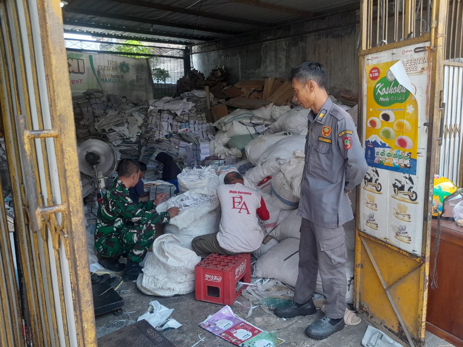 Babinsa Joyontakan Koramil 03 Serengan Kodim 0735 Surakarta Serka Sudiyono, Bersama Linmas melaksanakan Komsos Dengan Bapak Agus Triyono selaku warga yang kerja di Bank Sampah, kegiatan Bank Sampah ini meliputi pemilahan dan penimbangan yang dilakukan di Rt 03 Rw 05 Jontakan Serengan Kota Surakarta, Minggu 12 April 2026 pukul 09.00 Wib s.d selesai.