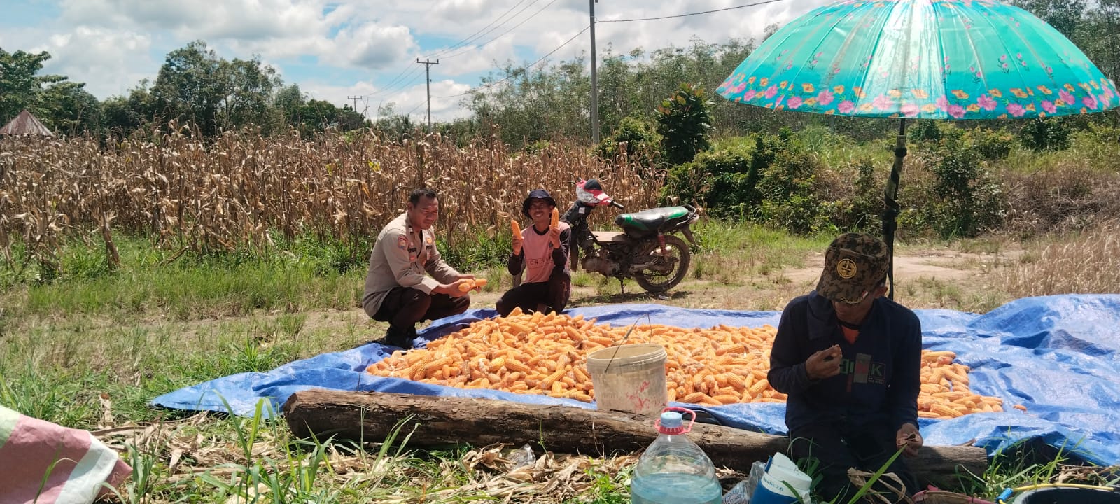 Panen jagung dilakukan di lahan seluas kurang lebih 6 hektar dengan estimasi hasil mencapai sekitar 1,5 ton per hektar jagung pipil. Untuk tahap awal, panen baru dilaksanakan pada sebagian lahan, sementara sisanya akan dilanjutkan dalam beberapa hari ke depan mengingat waktu tanam yang tidak bersamaan.