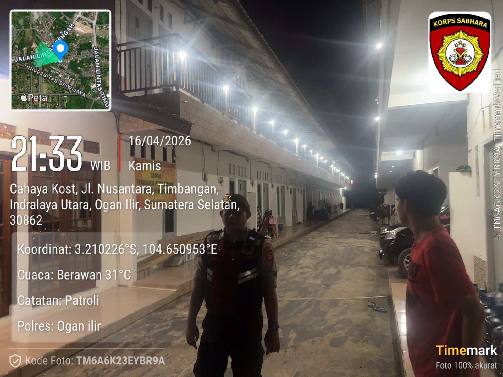 Personel Satuan Samapta Polres Ogan Ilir melaksanakan kegiatan Patroli Perintis Presisi pada Kamis (16/04/2026) malam sebagai langkah antisipasi gangguan kamtibmas, khususnya pencegahan aksi pencurian kendaraan roda dua (R2) di kawasan kos-kosan mahasiswa.