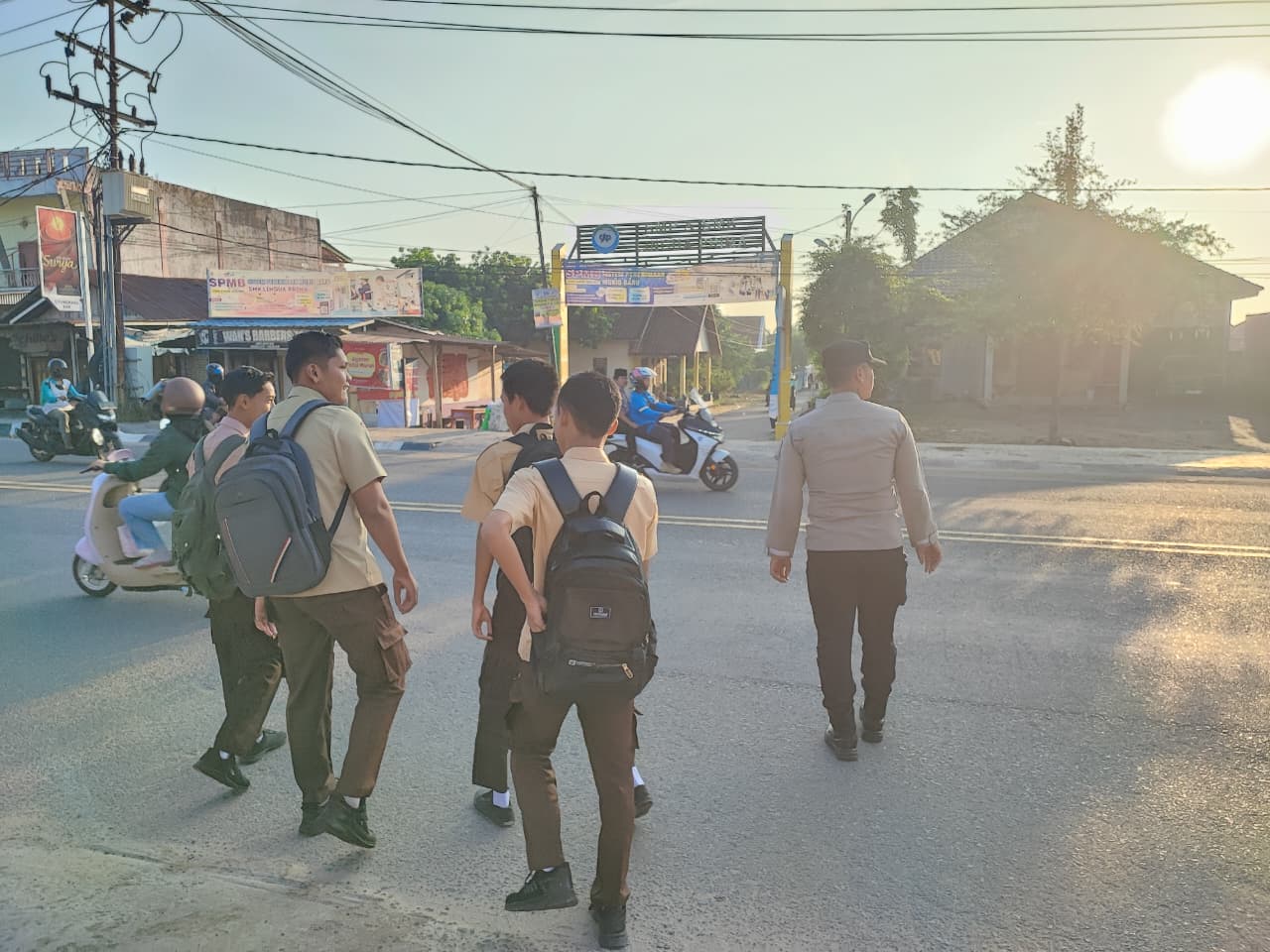 *Pastikan Keselamatan Pelajar, Polsek Indralaya Laksanakan Pengaturan Lalu Lintas di Simpang Sekolah*