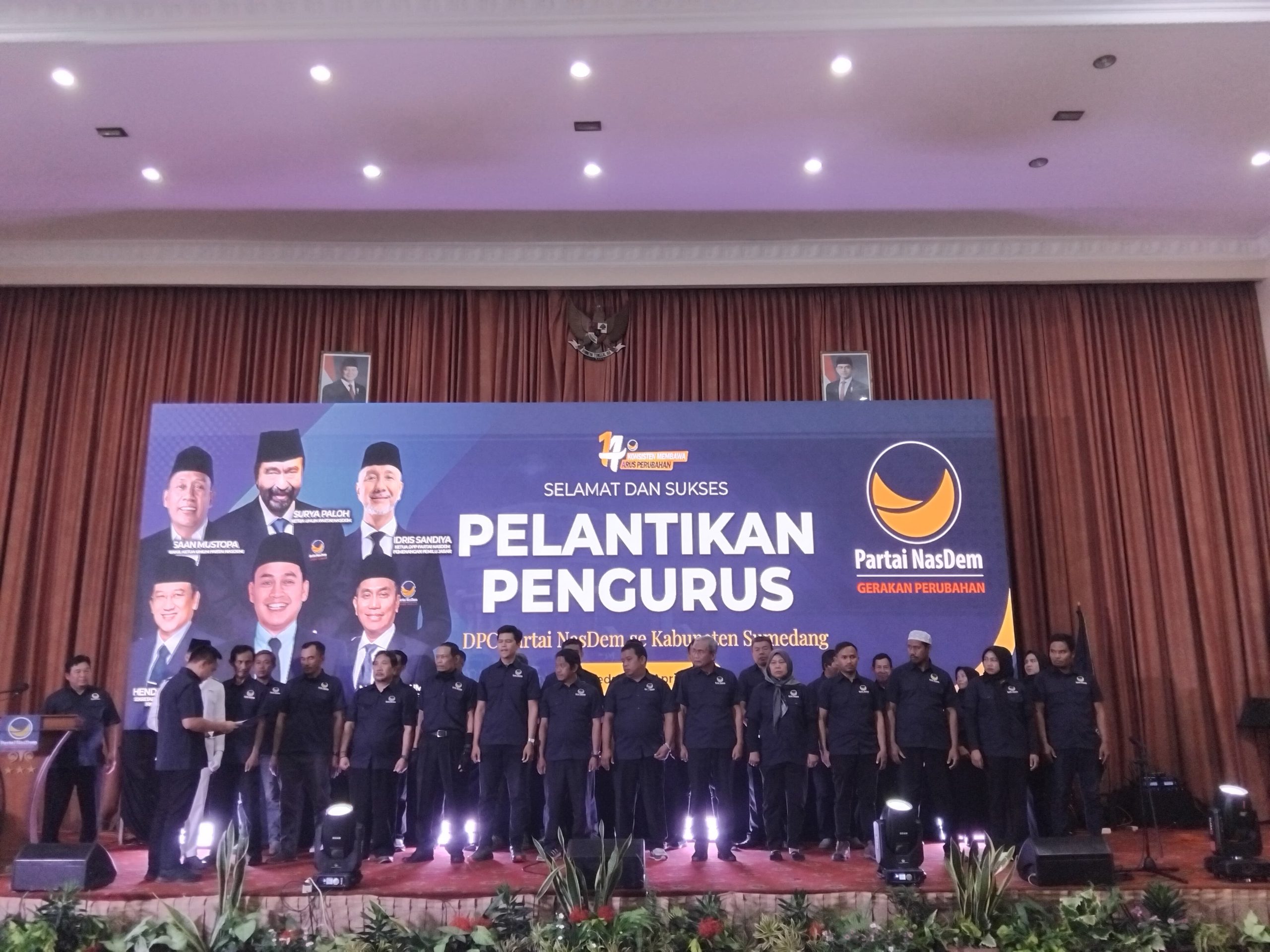 Pelantikan tersebut dipimpin langsung oleh Ketua DPW Partai NasDem Jabar, Mamat Rachmat, Serta Ketua DPD Partai NasDem Kabupaten Sumedang, Ujang Bey, yang secara resmi mengukuhkan jajaran pengurus DPC dari berbagai kecamatan di Kabupaten Sumedang.