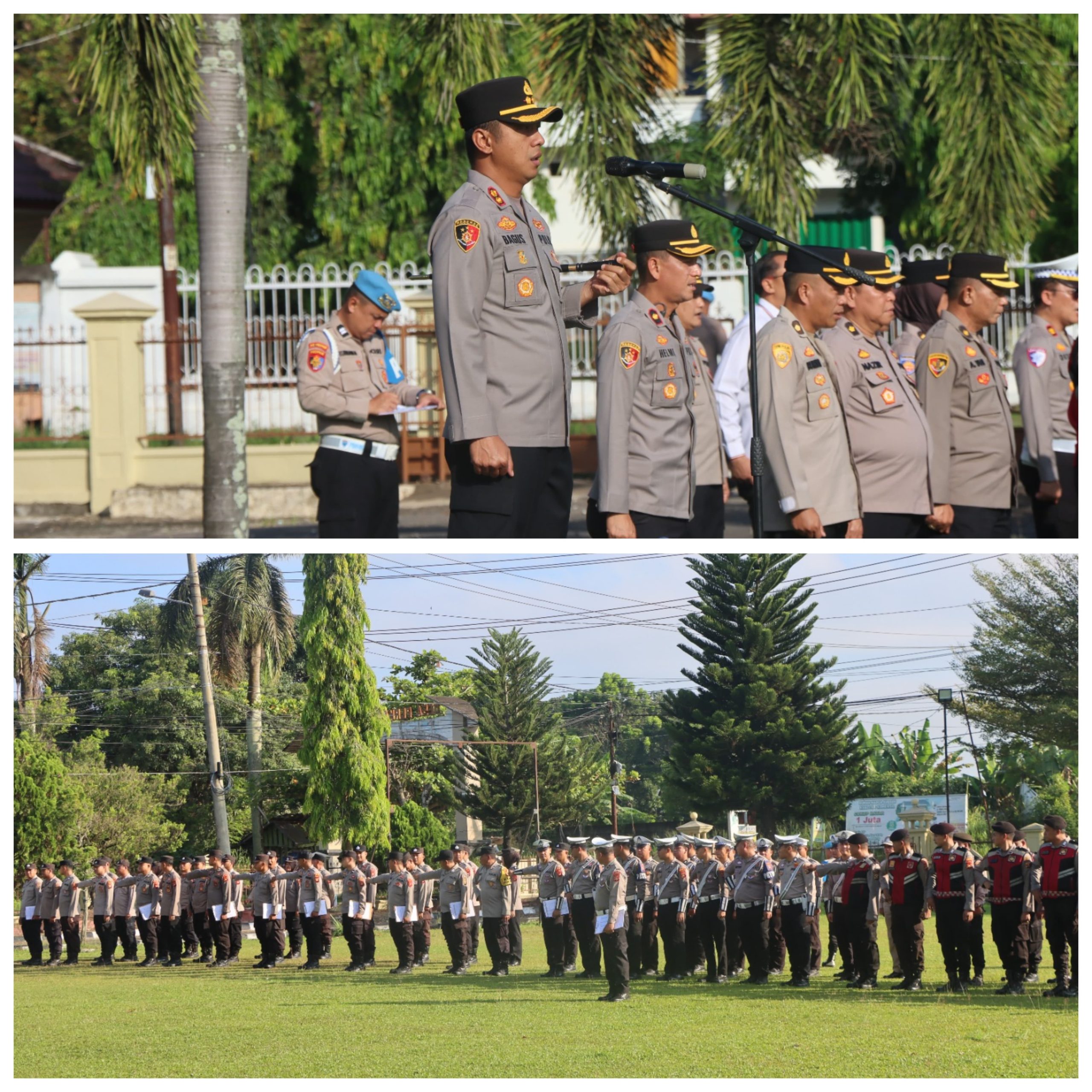 Apel pagi gabungan rutin hari Senin di lingkungan Polres Ogan Ilir dipimpin langsung oleh AKBP Bagus Suryo Wibowo, dan diikuti oleh Kompol Helmi Ardiansyah, para Pejabat Utama (PJU), serta seluruh personel Polres Ogan Ilir.