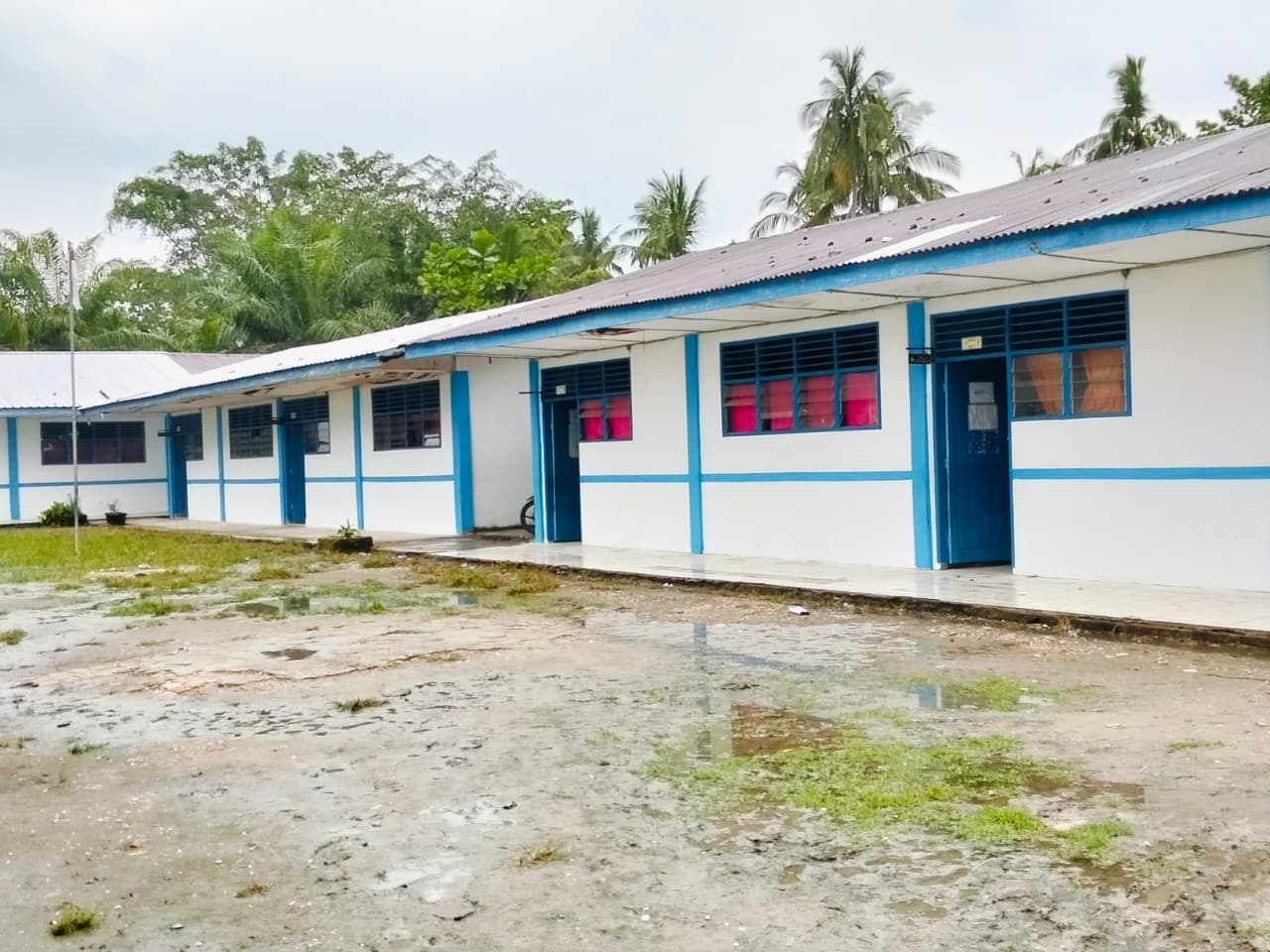 Pencetan dinding sekolah dan pencatan ruang sekolah terlihat sudah selesai,dan juga seperti mobiller plapon dan atap yang rusak sudah di tempel dan juga peralatan lainnya.
